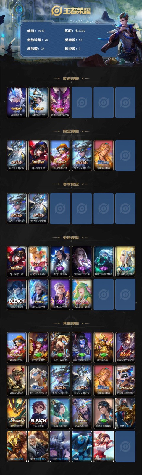 • V8 1典藏 1无双 22传说 69史诗 251皮肤 至圣王者